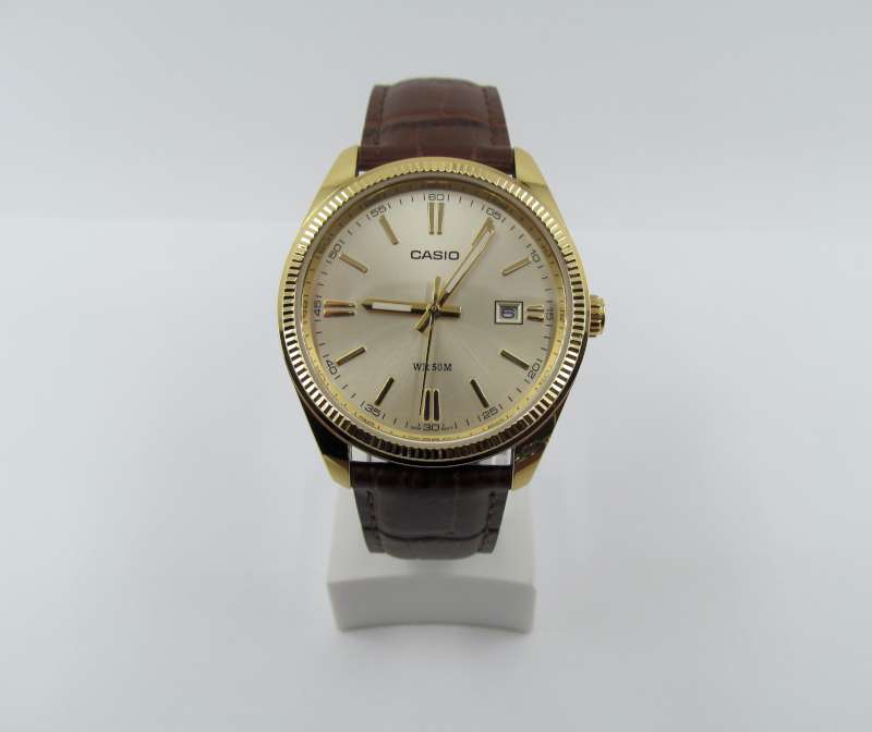 Pánské ocelové hodinky Casio, vodotěsnost 50 M, datum,baterie, hnědý kožený řemínek