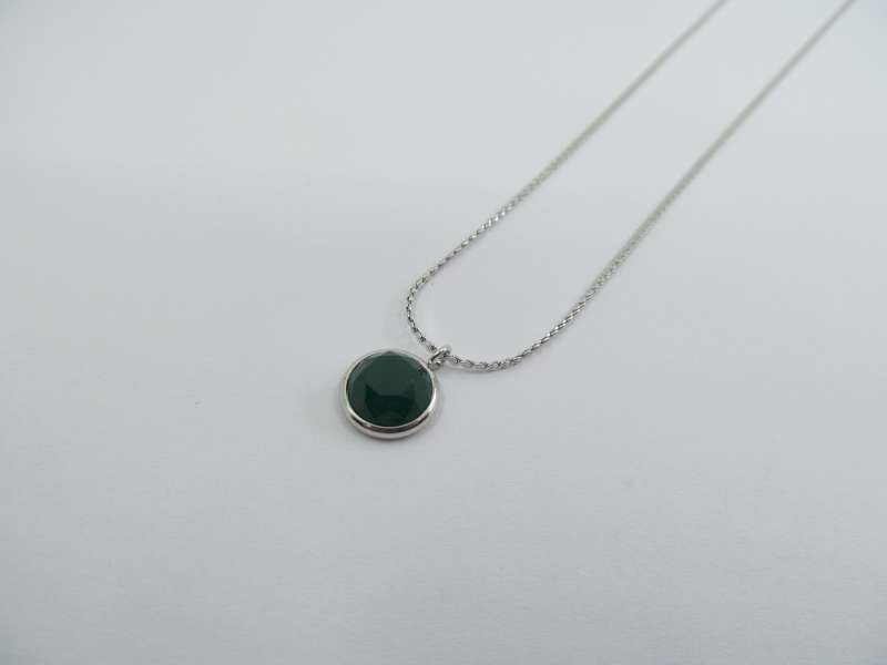 Ocelový náhrdelník se zeleným kamínkem, délka 40+4 cm, průměr kamínku 1 cm