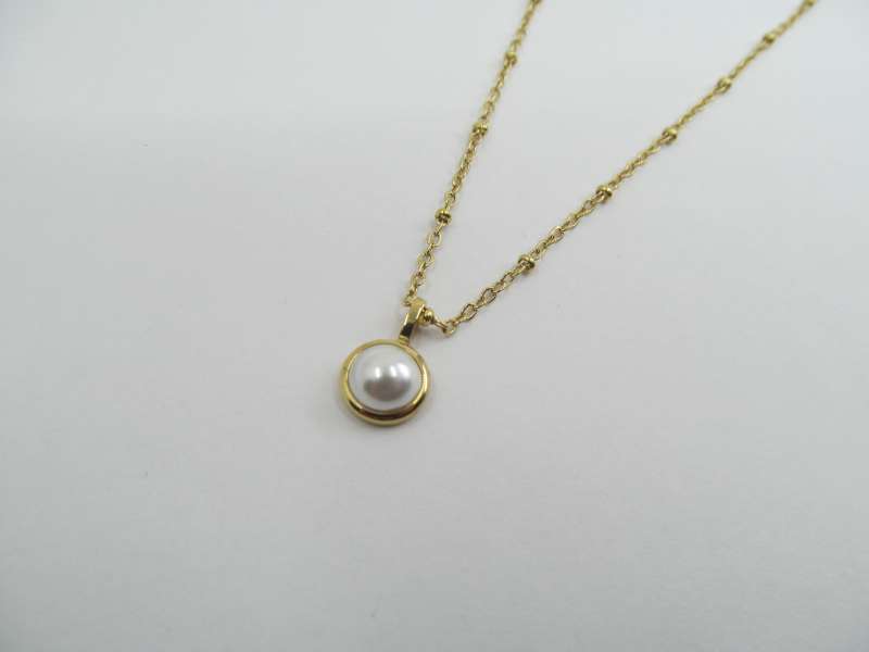 Pozlacený ocelový náhrdelník s perlou, průměr přívěsu 9 mm, délka 40+5 cm