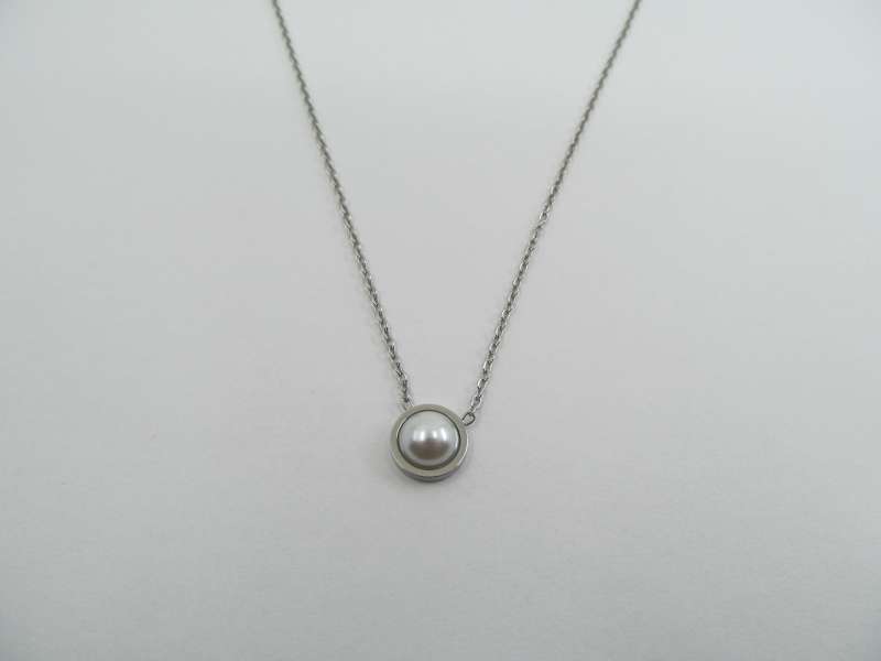 Tenký ocelový náhrdelník s umělou perlou, délka 44+5 cm