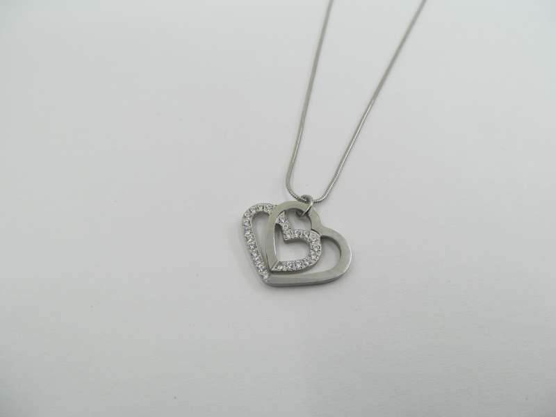 Ocelový řetízek se srdíčky, kamínky, délka 45-50 cm