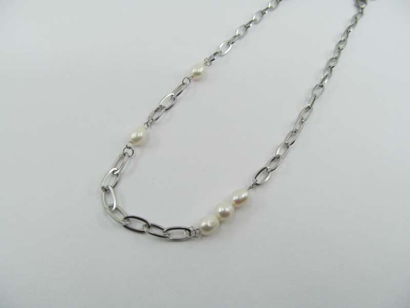 Ocelový náhrdelník s perlami, délka 42+5 cm