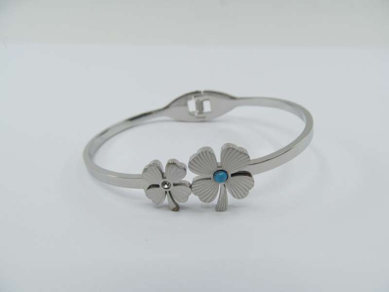 Pevný ocelový náramek kytičky,modrý kamínek, šířka 6 cm (18 cm)