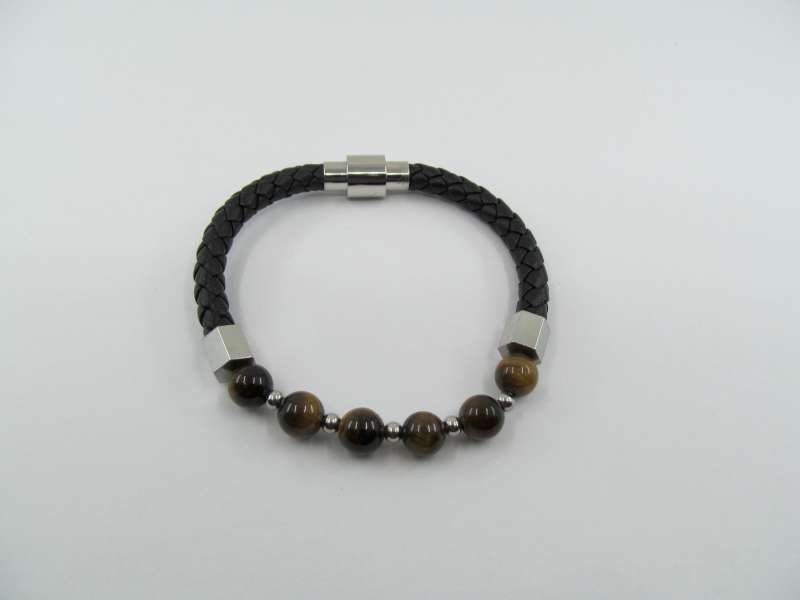 Pánský kožený/ocelový náramek s korálky, délka 21 cm