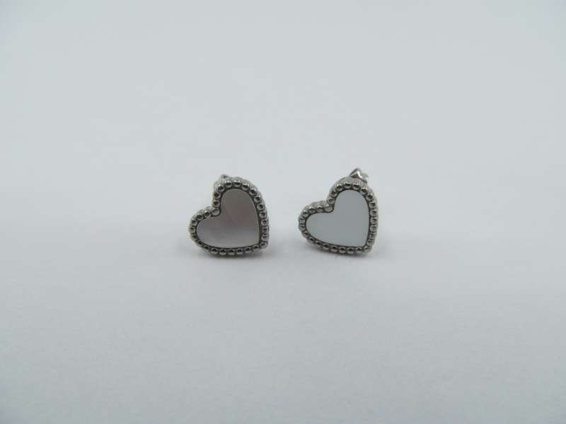 Ocelové náušnice srdíčka s perletí, puzešta, 1 cm