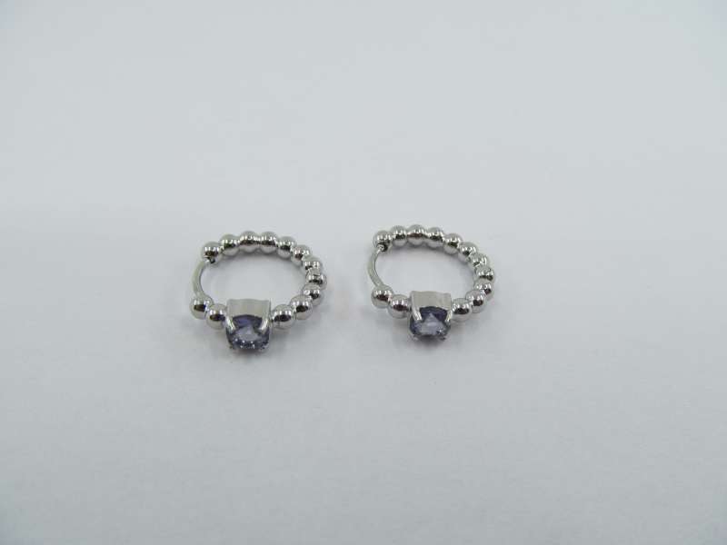 Ocelové náušnice kruhy s fialovým kamínkem, průměr 12 mm