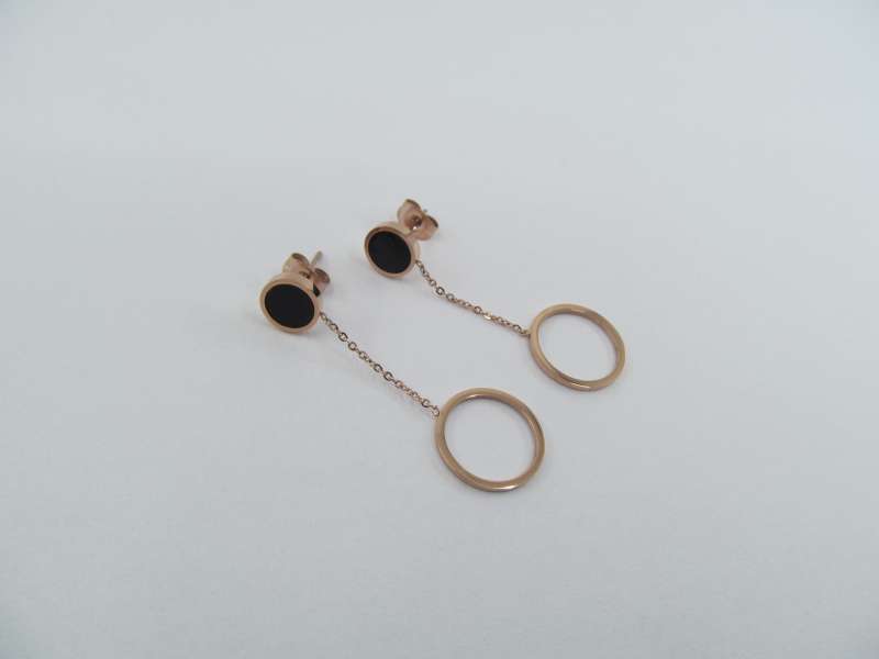 Ocelové náušnice rose gold, puzeta, délka 4 cm
