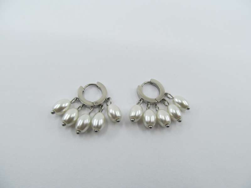 Ocelové náušnice s perličkami, průměr kruhu 1,2 cm