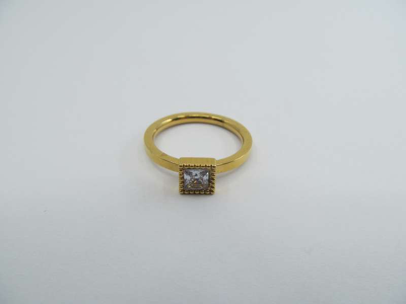 Pozlacený ocelový prsten s kamínkem, vel. 55