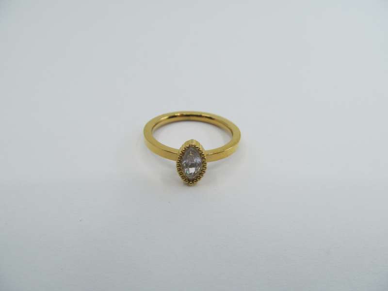 Pozlacený ocelový prsten s kamínkem, vel. 55