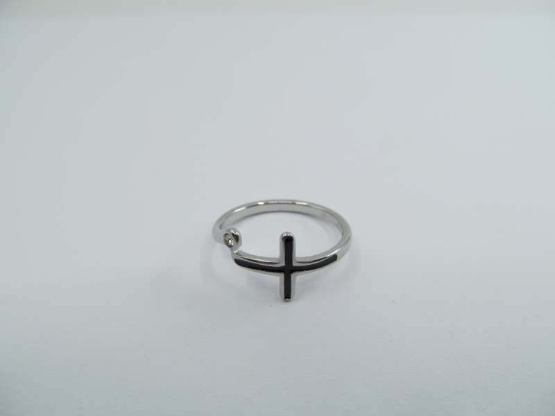 Ocelový prsten kříž s kamínkem, vel. 57