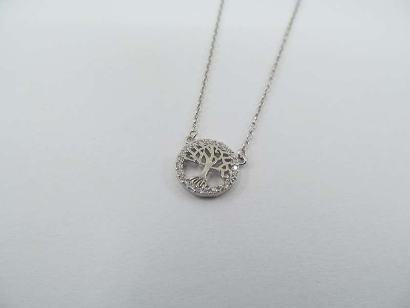 Stříbrný náhrdelník se stromem života, zirkony, , délka 42+3 cm, strom 11 mm