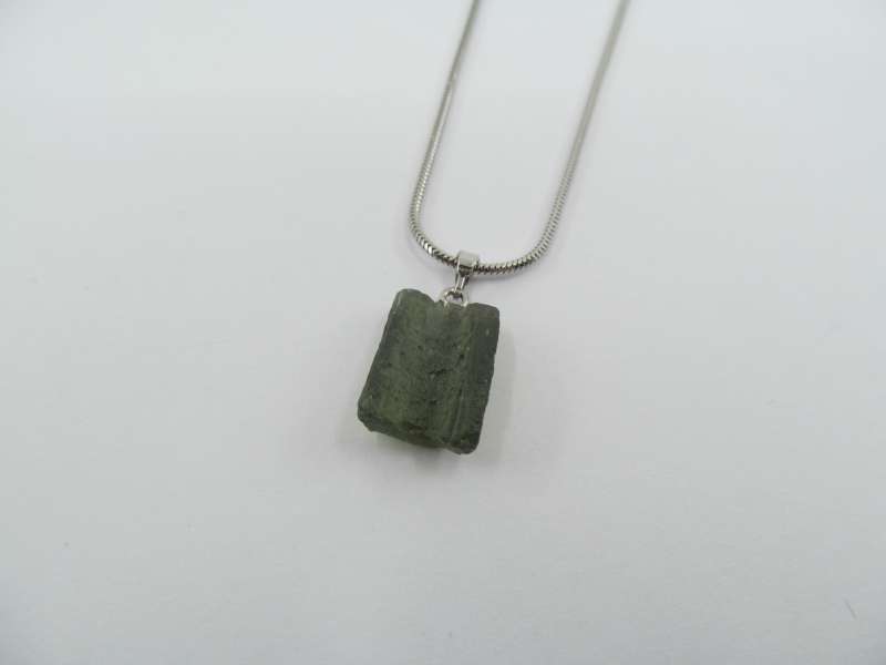 Stříbrný řetízek s vltavínem, délka 45 cm, certifikát