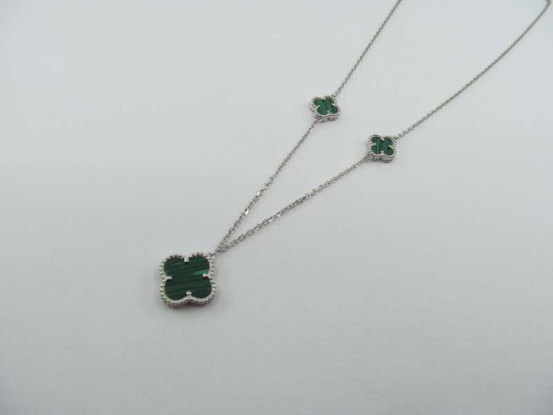 Stříbrný náhrdelník se čtyřlístky, malachit, délka 40+5 cm