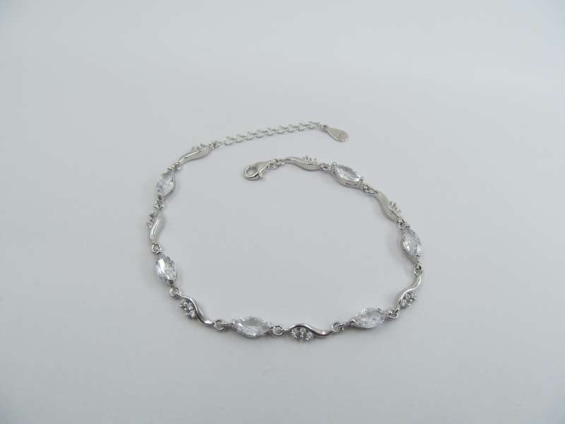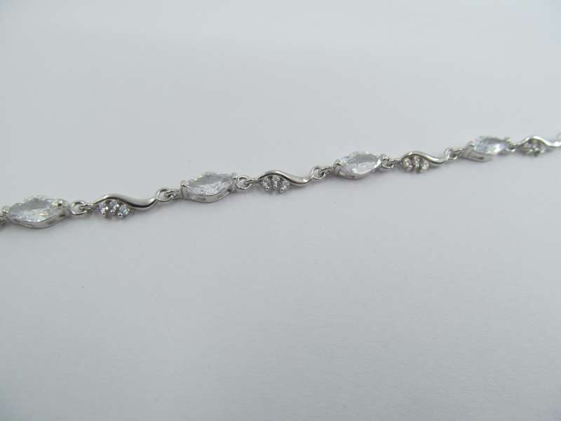 Stříbrný náramek se zirkony, délka 17+3 cm