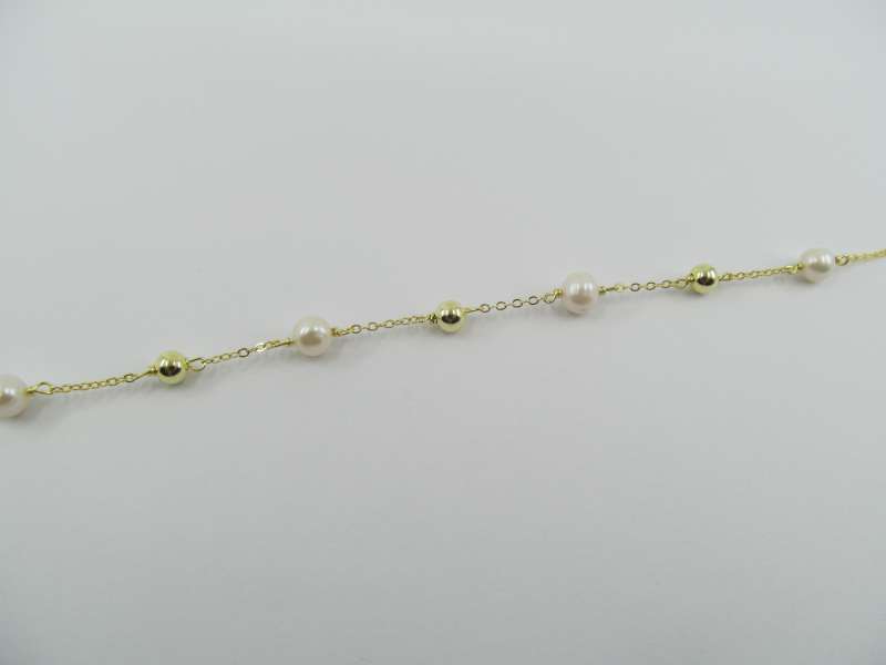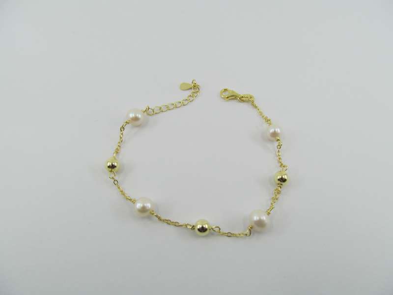 Pozlacený stříbrný náramek s kuličkami a říčními perlami, délka 17-20 cm