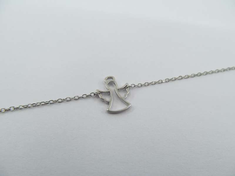 Stříbrný rhodiovaný dětský náramek s andělem, délka 12+3 cm