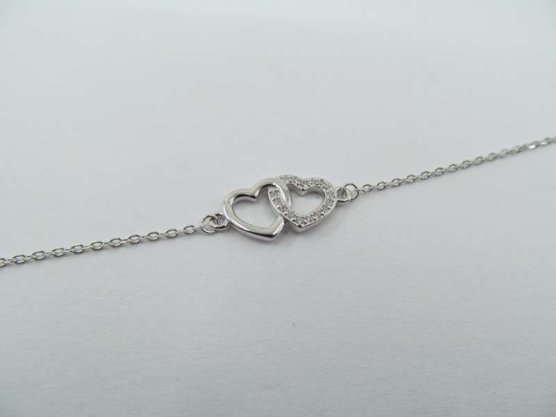 Stříbrný rhodiovaný dětský náramek se srdíčky, zirkony, délka 12+3 cm