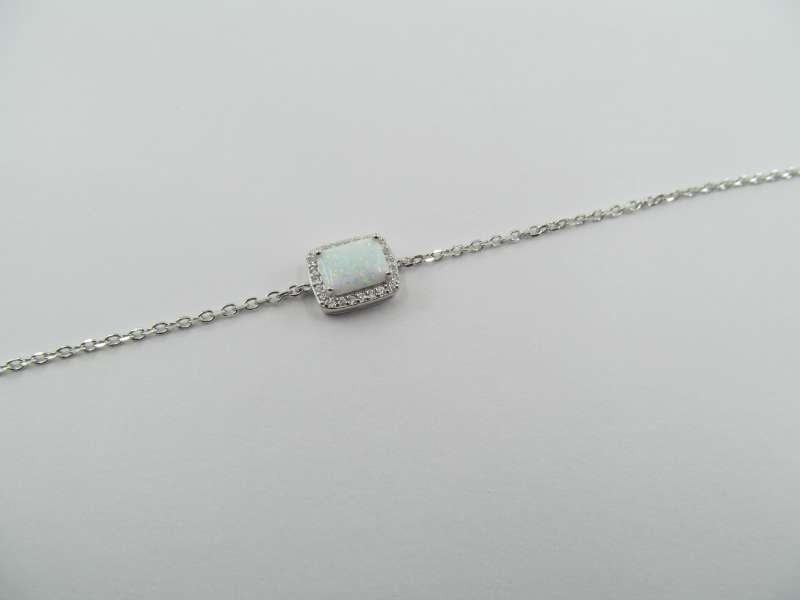 Stříbrný náramek se zirkony a syntetickým opálem, délka 17+3 cm