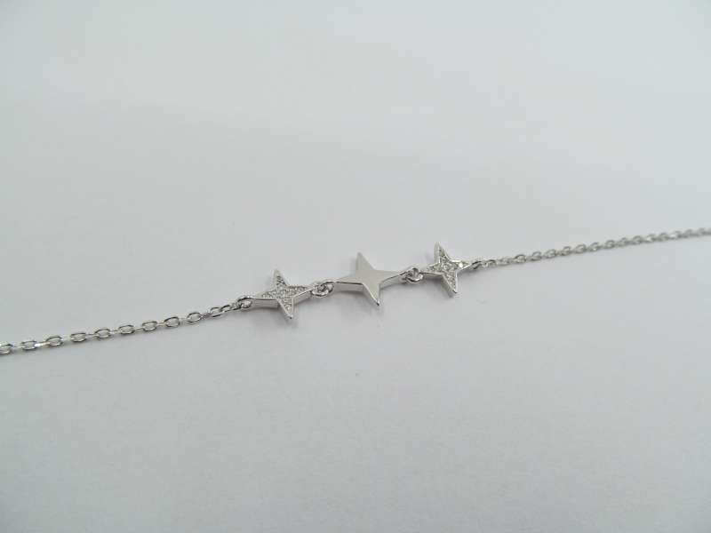 Tenký stříbrný náramek s hvězdami, zirkony, délka 17-20 cm