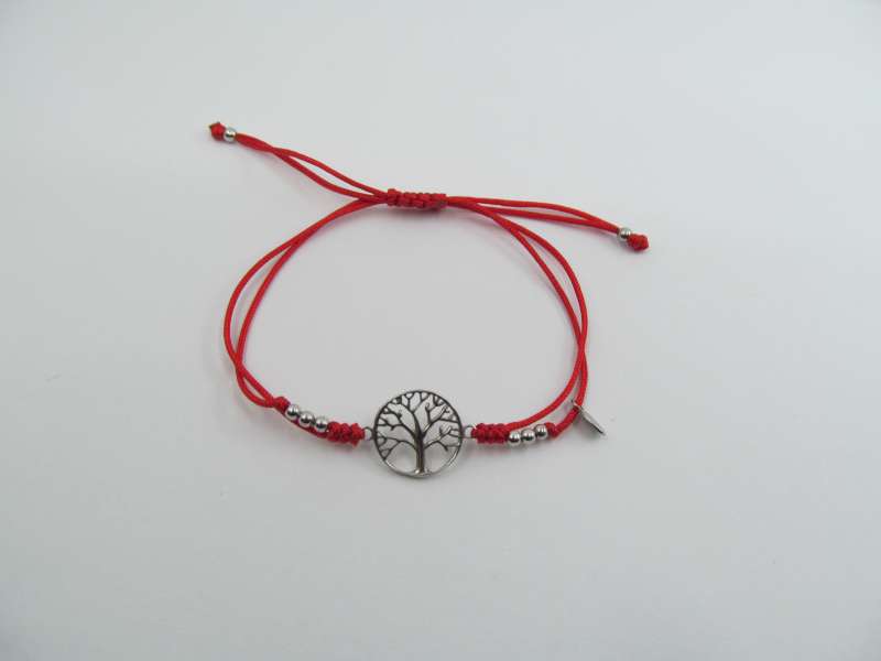 Červená stahovací šňůra se stříbrným stromem života, stříbro 925/1000
