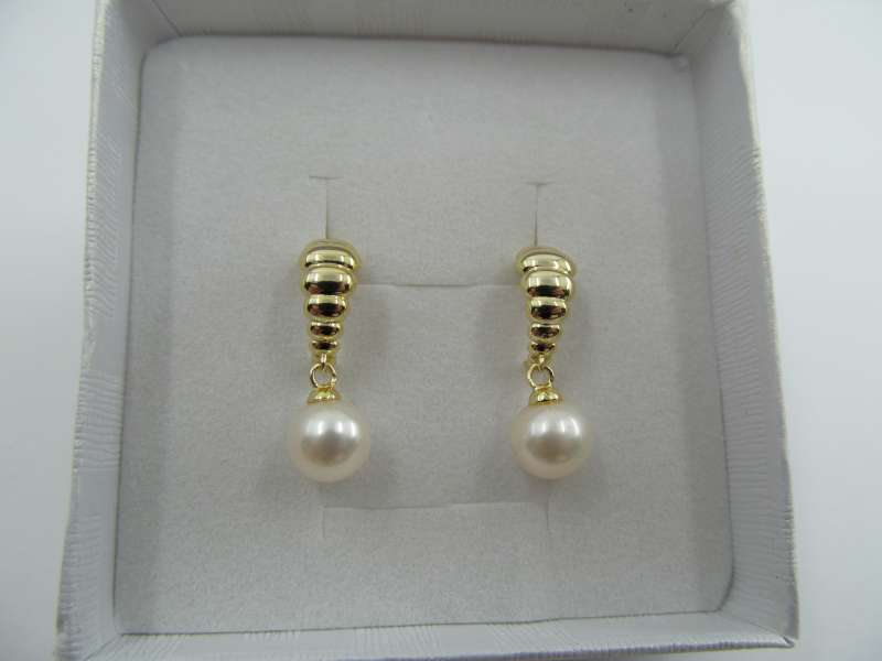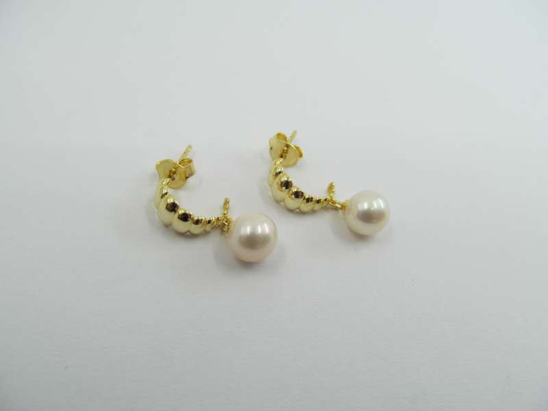 Stříbrné pozlacené náušnice s říční perlou, puzeta