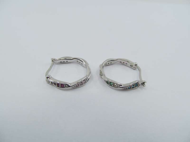 Stříbrné rhodiované náušnice s barevnými zirkony, průměr 19 mm