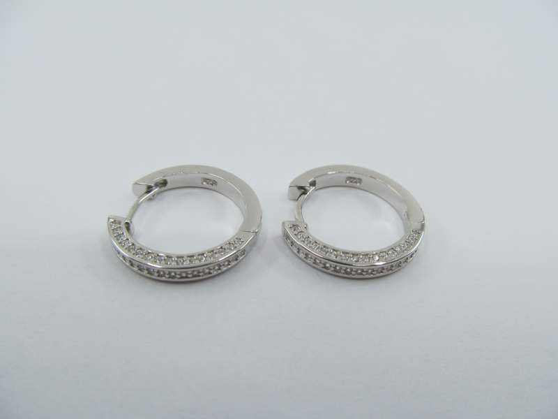 Stříbrné rhodiované náušnice se zirkony, průměr 20 mm