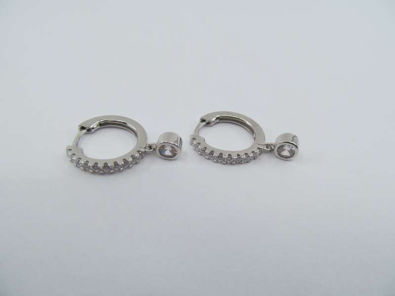 Stříbrné rhodiované náušnice se zirkony, průměr 15 mm