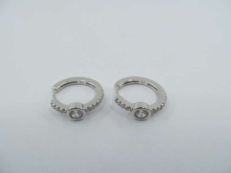 Stříbrné rhodiované náušnice se zirkony, průměr 18 mm