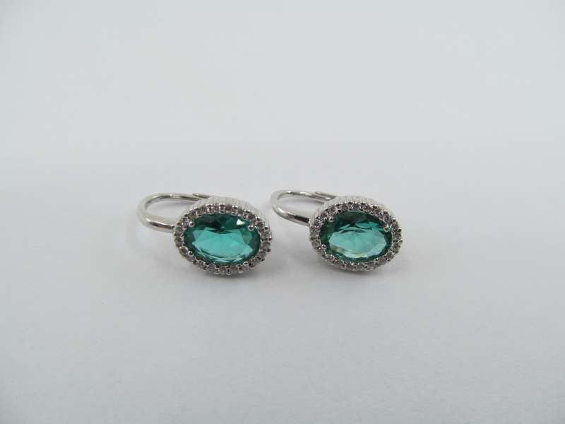 Stříbrné náušnice se zirkony, klasické zapínání, tyrkysové