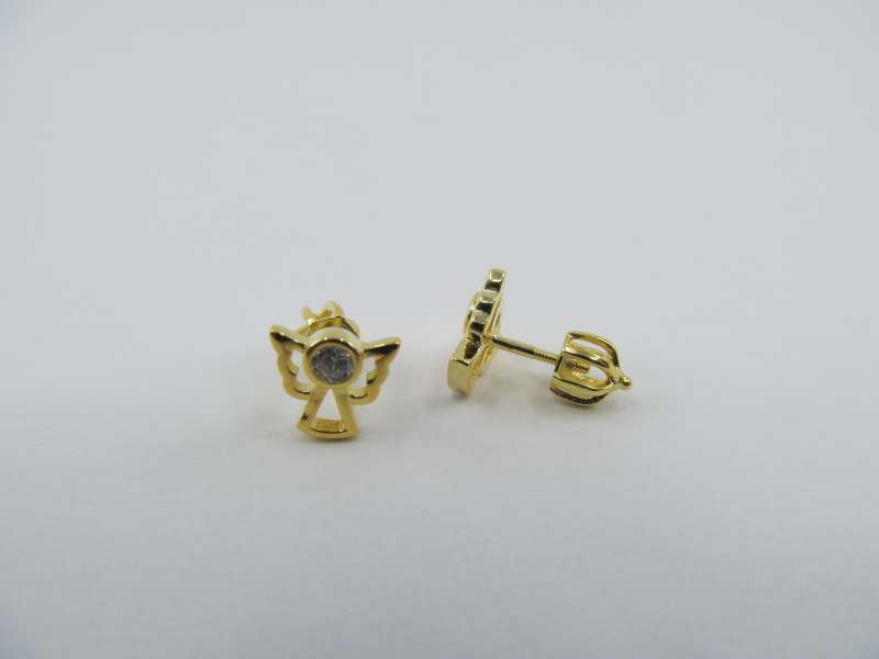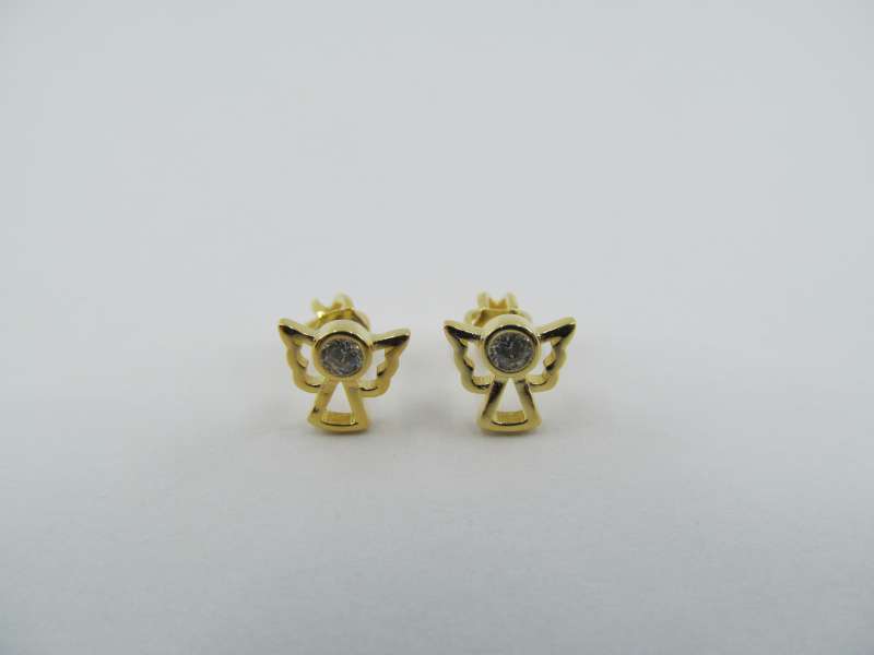 Stříbrné šroubovací pozlacené náušnice anděl se zirkonem, 7 mm