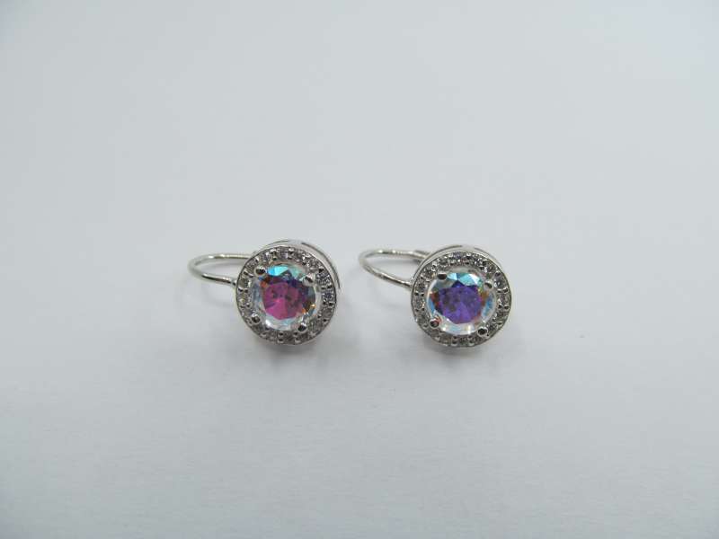 Stříbrné rhodiované náušnice se zirkony, klasické zapínání