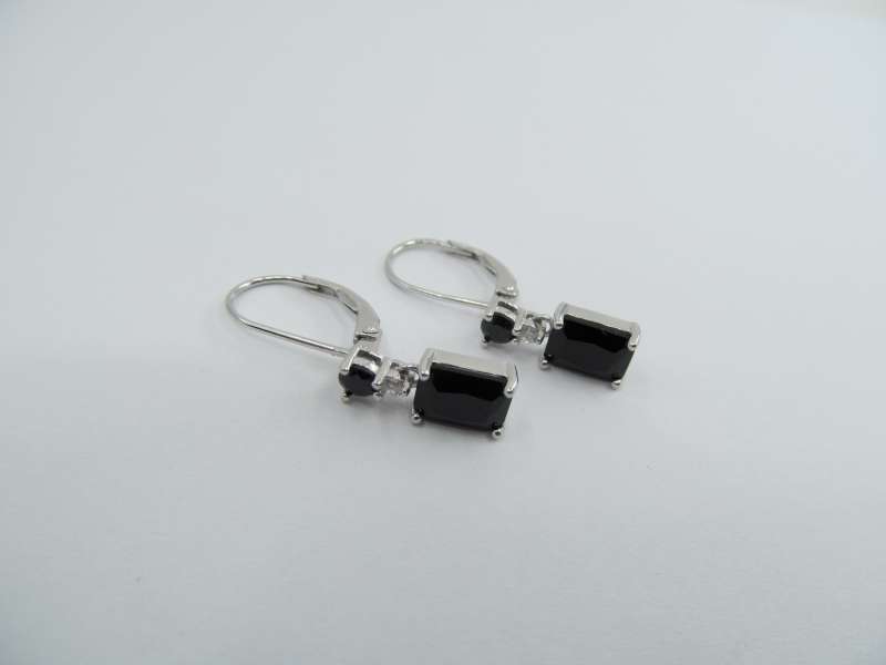 Stříbrné rhodiované náušnice s černými zirkony, visací