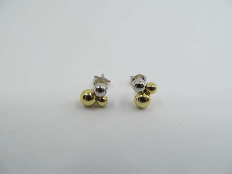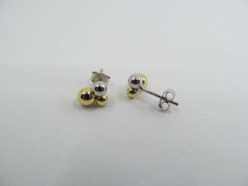 Stříbrné náušnice s puzetou, zlaté a stříbrné kuličky, 9 mm