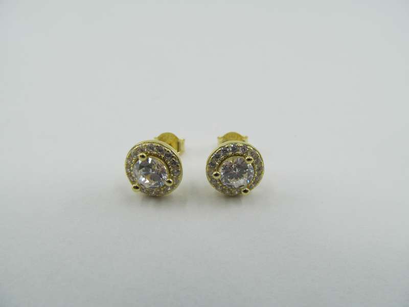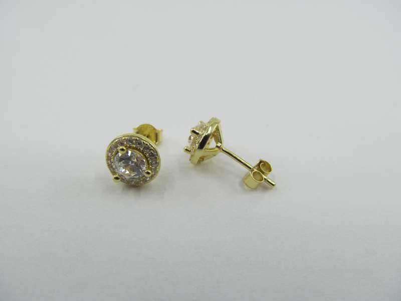 Stříbrné pozlacené náušnice se zirkony, puzeta