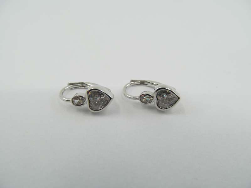 Stříbrné dětské pokračovací náušnice, zadní zapínání, zirkon, srdíčko