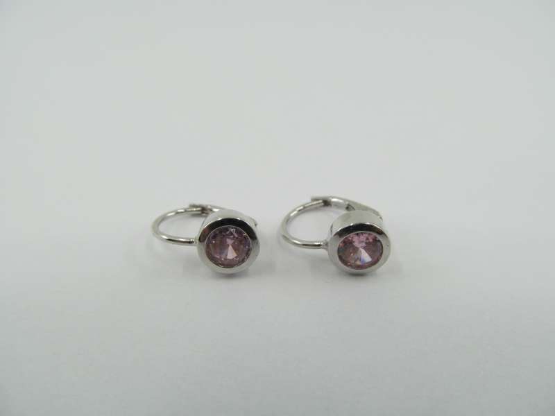 Stříbrné dětské pokračovací náušnice, zadní zapínání, růžový kamínek