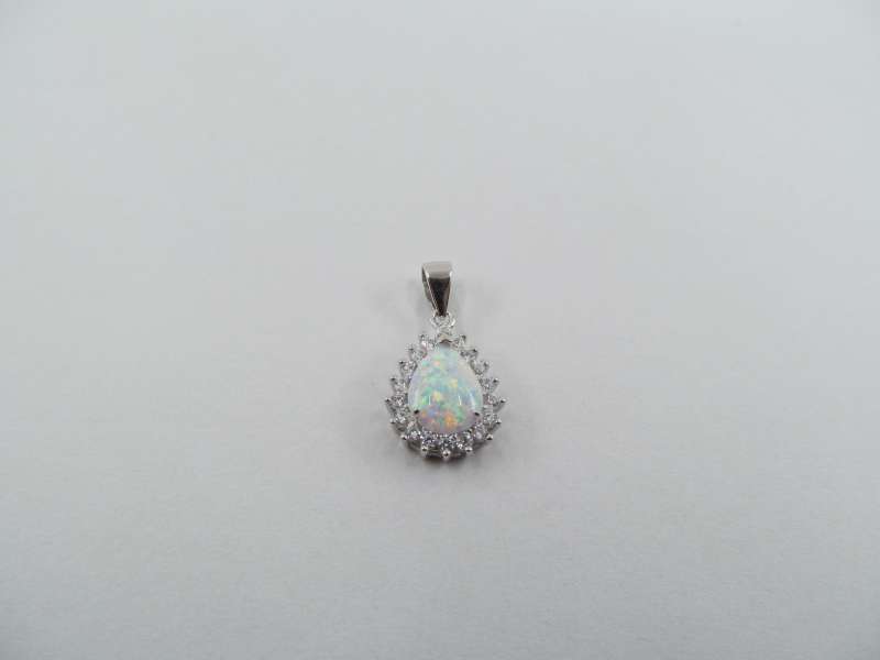 Stříbrný přívěs se zirkony a syntetickým opálem