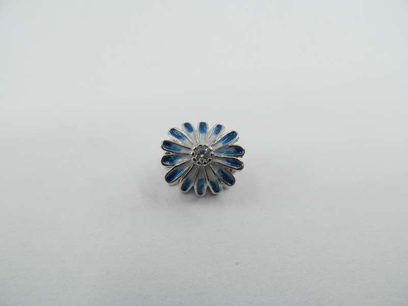 Stříbrný korálek na náramek, modrá kytka se zirkonem