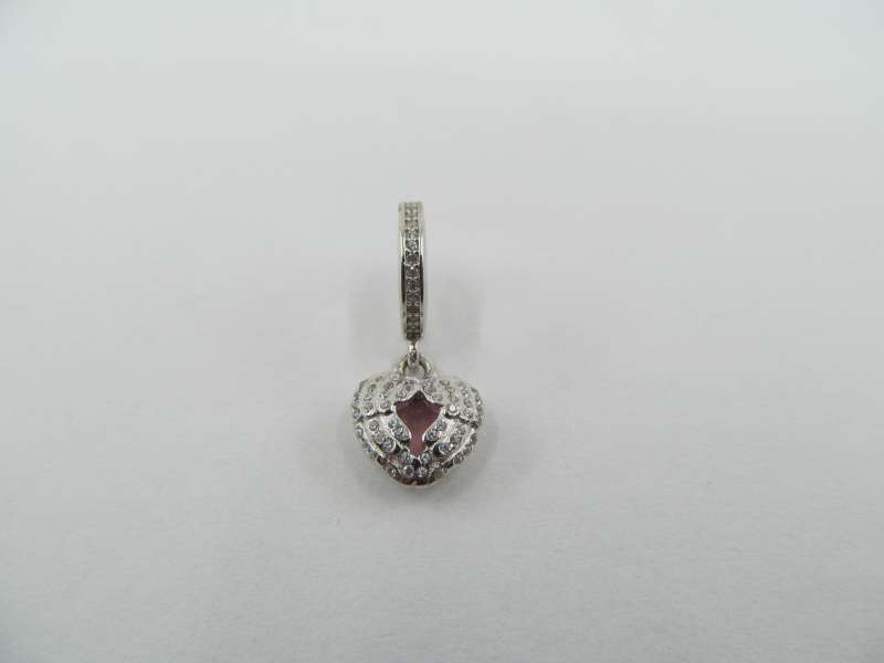 Stříbrný korálek na náramek, srdíčko se zirkony