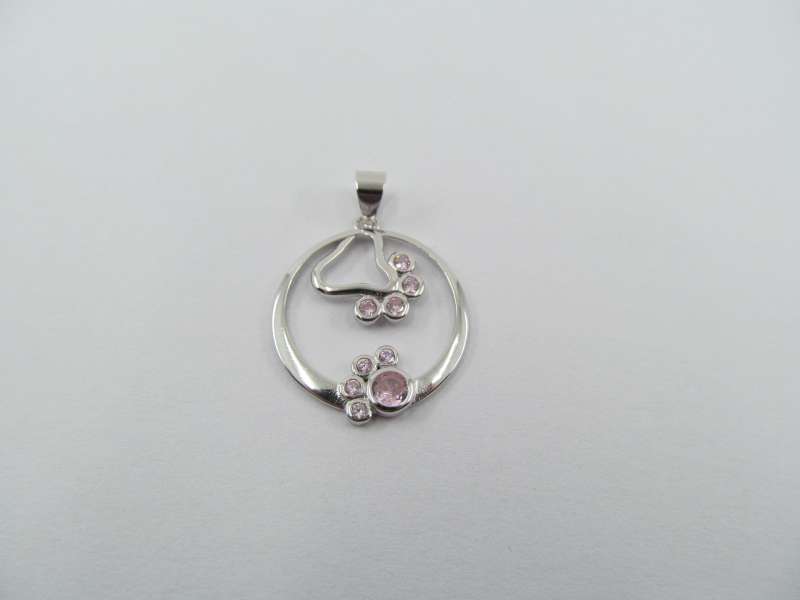 Stříbrný přívěs tlapky s růžovými zirkony, průměr 2 cm
