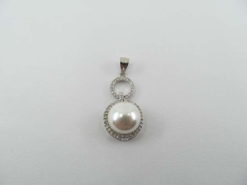 Stříbrný přívěs s perlou a se zirkony, délka bez očka 2 cm