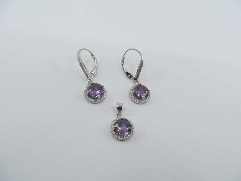 Stříbrná souprava náušnic a přívěsu s fialovými zirkony