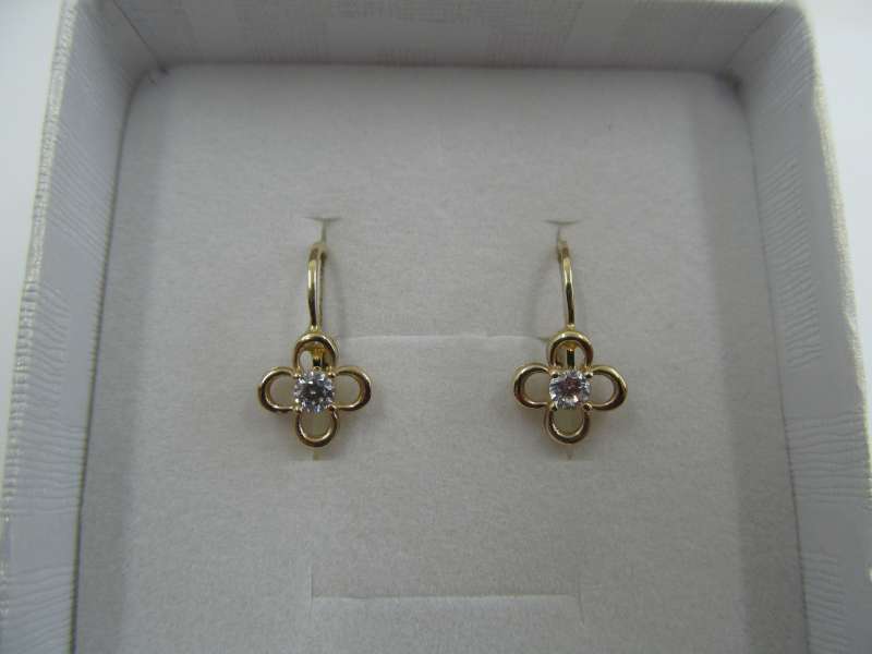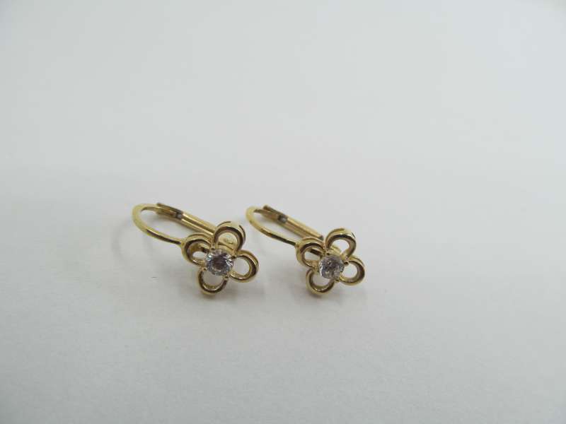 Zlaté pokračovací dívčí náušnice se zirkony, čtyřlístek, 1,85g, 585/1000