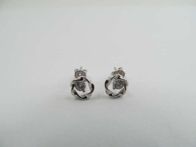 Náušnice z bílého zlata se zirkonem, šroubovací, 1,12 g, 585/1000, 6 mm
