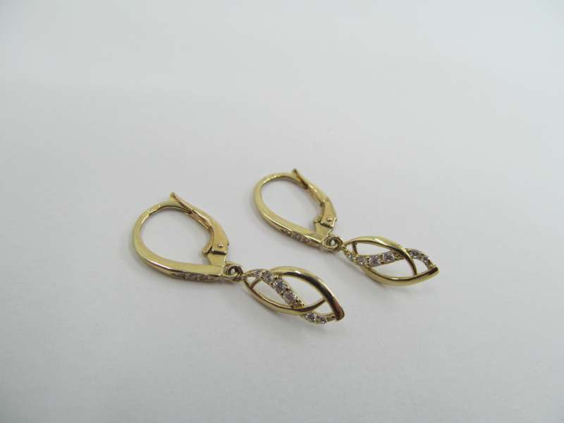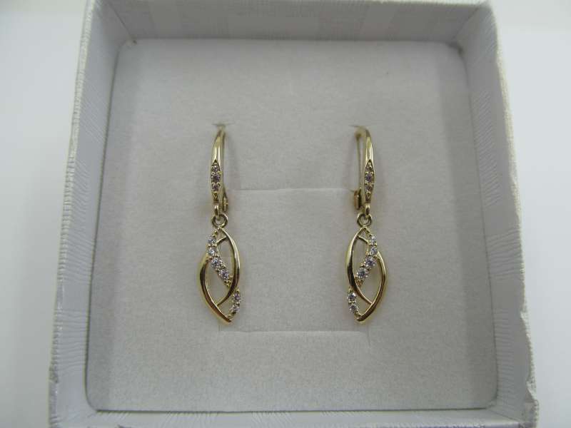 Zlaté klasické náušnice se zirkony, celková délka 3 cm, 1,82g, 585/1000