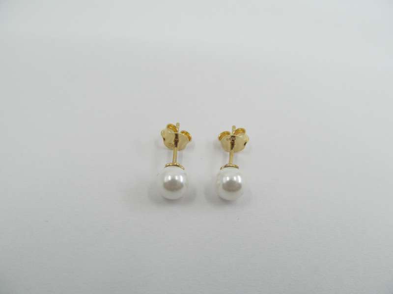 Zlaté náušnice s říční perlou, puzeta, 1,16 g, 585/1000, perla 6 mm