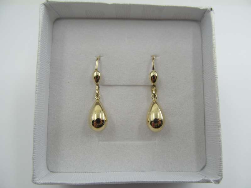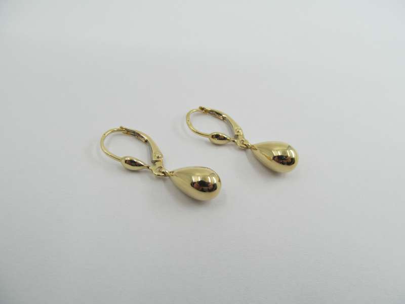 Zlaté visací náušnice, zapínání na klapku, 2,08 g, 585/1000, délka závěsu 1 cm, celková délka 2,8 cm
