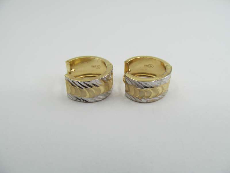 Zlaté náušnice kruhy, průměr 1,4 cm, šířka 8 mm, 3,08 g, 585/1000